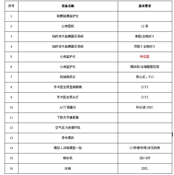 五、拟采购医用小型设备清单:(心脏外科建设)