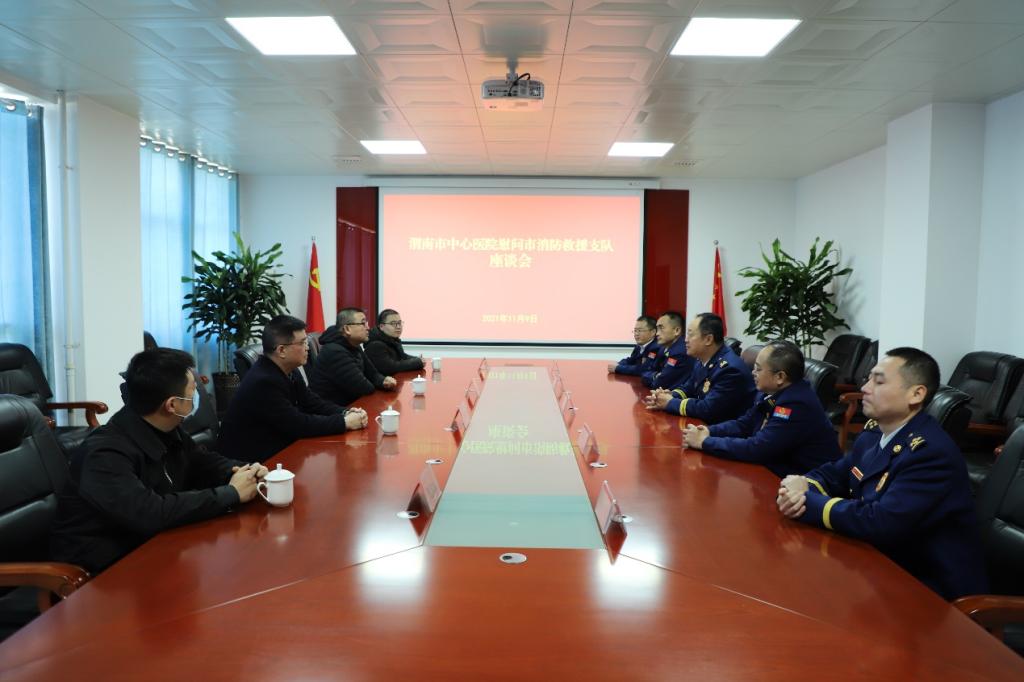 11月9日是“消防安全日”,当天,市中心医院相关负责人走访慰问市消防救援支队,向消防官兵们致以节日问候和崇高的敬意,并赠送了应急救援包和防疫物资,随后召开了座谈会。