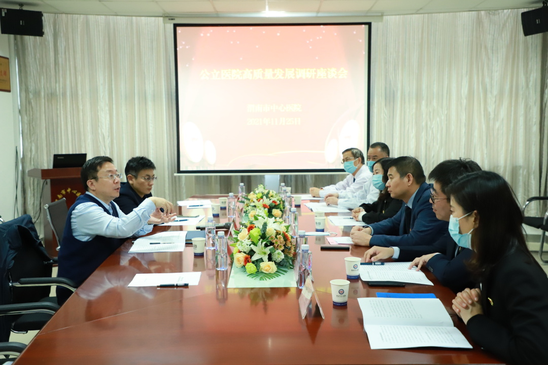 随后,调研组听取了医院高质量发展新体系、新趋势、新效能、新动力、新文化、信息化等方面工作汇报,希望医院牢牢把握“十四五”规划确立的公立医院高质量发展战略机遇,以改革创新为动力,在毫不放松做好疫情防控和医疗救治工作的基础上,不断提升学术研究,提质增效,强化精细化管理,推动医院高质量发展,为人民群众提供更加优质便捷高效的健康服务。