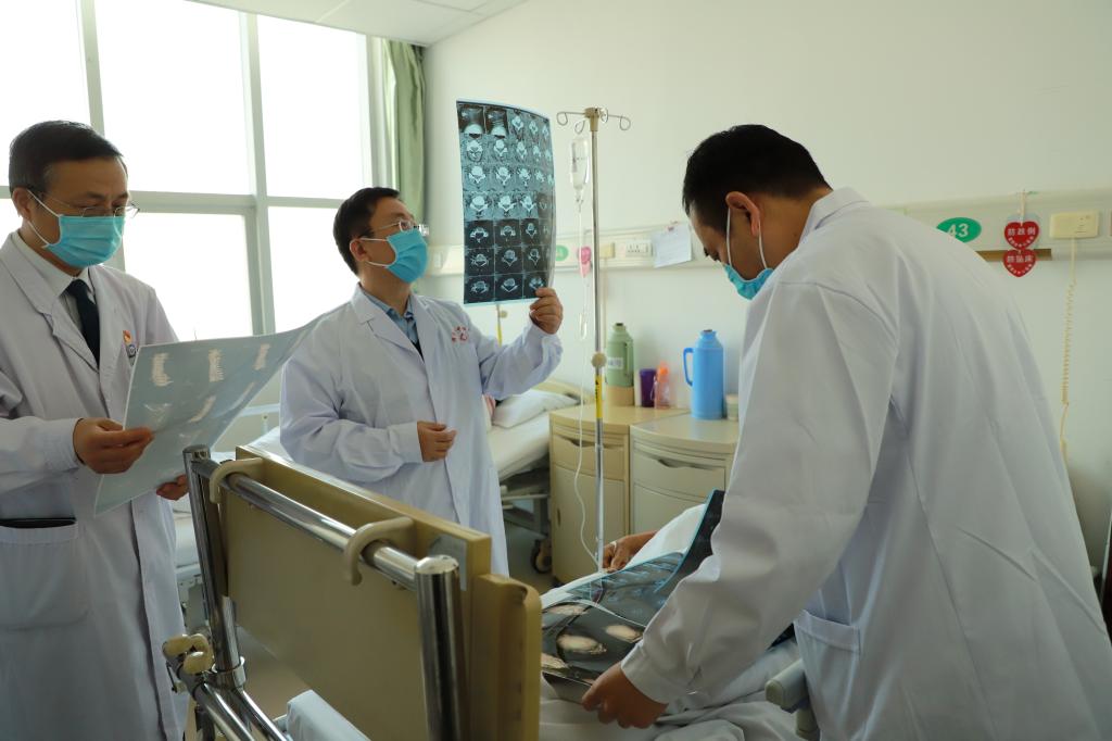 骨科学术讲座环节,刘亚军主任对北京积水潭医院的历史、专家、科室作了介绍,对我院学科发展、医学研究等提出指导性建议。讲座结束后,对骨科两位病情复杂的患者查房会诊,与主治医师讨论研究患者病情,提出治疗建议。