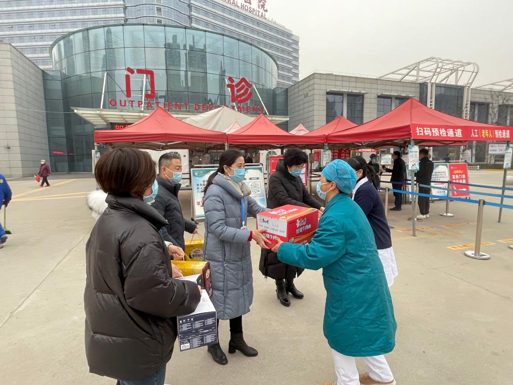 院领导分组给防疫一线的医护人员们送上牛奶、面包和泡面等食品。在核酸采集处、预检分诊、发热门诊、核酸检测实验室、感染性疾病科等处,院领导叮嘱医护人员们一定要做好个人防护,同时注意休息。