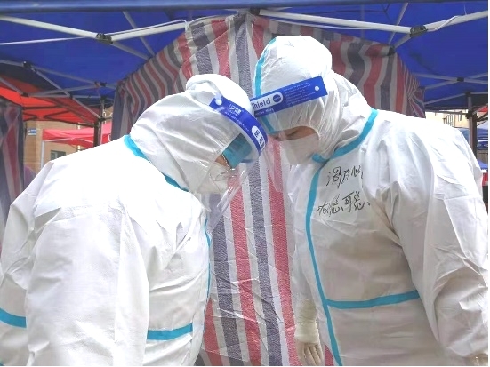 冷风中冻得通红的双手,连续站立六七个小时之后依旧挺拔的身姿,这就是我们医务工作者。看着同伴们疲惫却依然带着笑颜的脸庞,忽然觉得我们就是一群可爱的大白。任务过程中,更多的是那句真诚地“谢谢”,就连小朋友都说:“你们辛苦了,保护好自己,我们共同努力抗疫,希望西安早日疫情清零”。社区抗疫一线人员还送来了保暖衣物,衣物是冰冷的,但大家的内心是炽热的,不仅温暖我们的身体,更温暖着我们每个人的心。