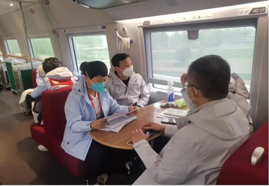 陕西省援沪医疗队在高铁上紧张商讨方案