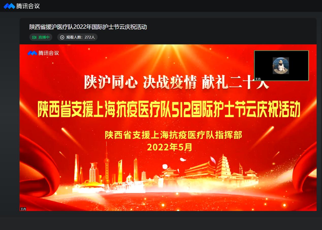 因疫情防控要求,队员们不能聚集在一起,但丝毫不影响大家的热情,有的写稿,有的组织,线上“云”排练。5月10日,陕西省援沪医疗队5.12护士节“云庆祝”演出中,渭南市援沪医疗队《白衣执甲,不负韶华》的精彩演讲,赢得了阵阵掌声。