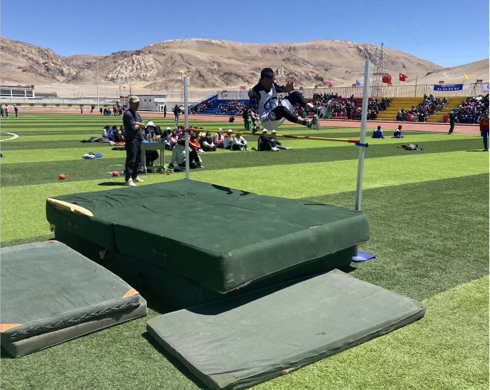 到了学校操场,大家便被熟悉的运动会背景音乐感染,加油稿用藏语和汉语交错播放,同学们加油的声浪此起彼伏。在与校医交接过后,队员们迅速进入工作状态,伤口消毒包扎、受伤部位冷敷及固定,医疗队忙碌的身影打造出赛场上洁白靓丽的风景线。