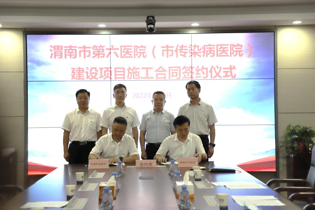 8月9日上午,渭南市第六医院(市传染病医院)建设项目举行施工合同签约仪式。市卫健委党组书记、市中心医院党委书记张荣岗进行鉴签,市中心医院院长乔梵进行签约。