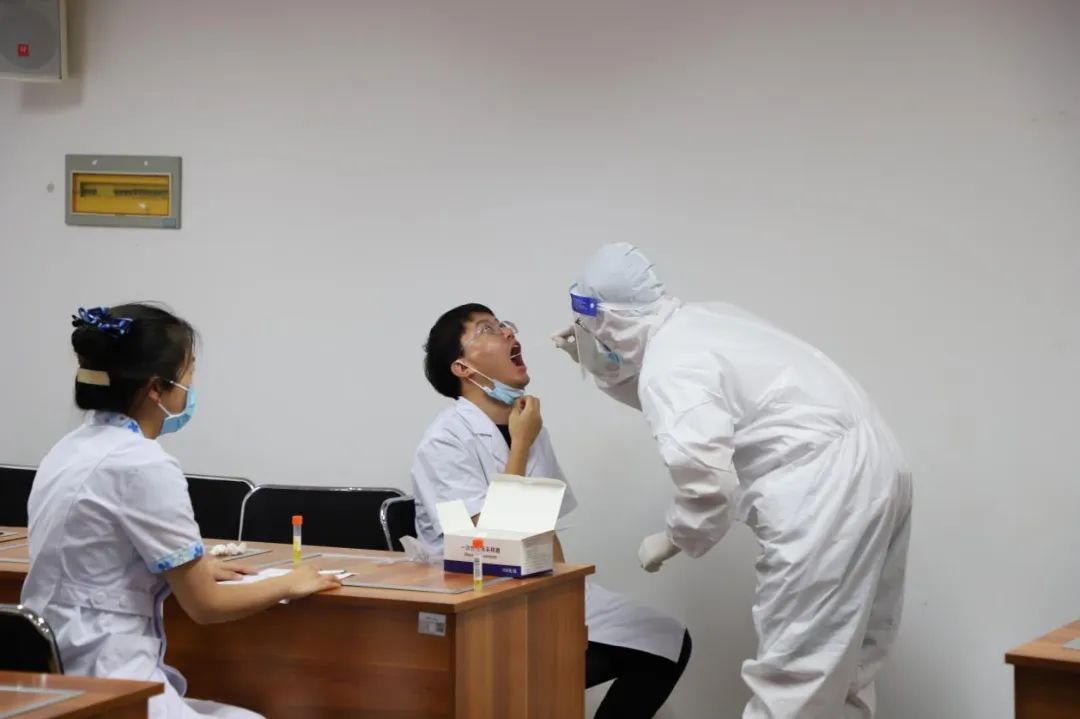 8月19日,科教科联合护理部为19名志愿者进行核酸采样相关业务培训,培训内容包括穿脱防护服、鼻咽拭子采集等。培训考核结束后,住培医师们即将投身社区开展核酸采样工作。