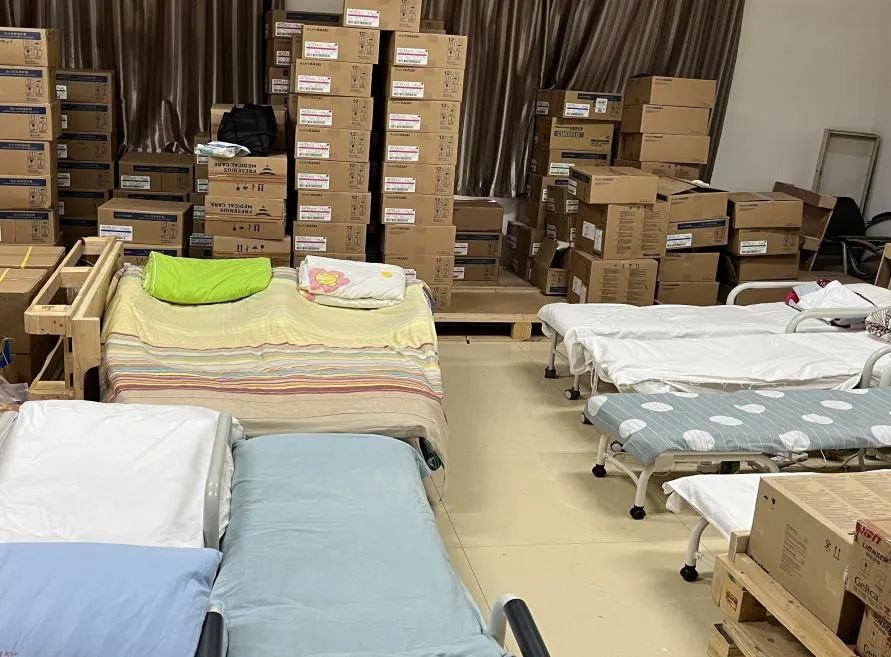 随着疫情的发展,更多的小区封控管理,为了保证医护人员不因封控小区而减少,所有人员相对闭环管理,住在医院。但透析室地方有限,床位使用率百分之百。大家克服困难,在不到二十平米、弥漫着纸箱味的库房,支起了十余张陪床椅,有的甚至席地而眠。