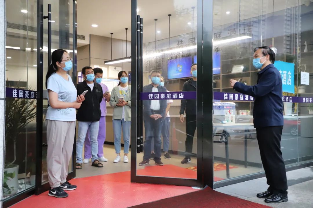 乔梵院长在酒店外询问闭环管理人员生活状况