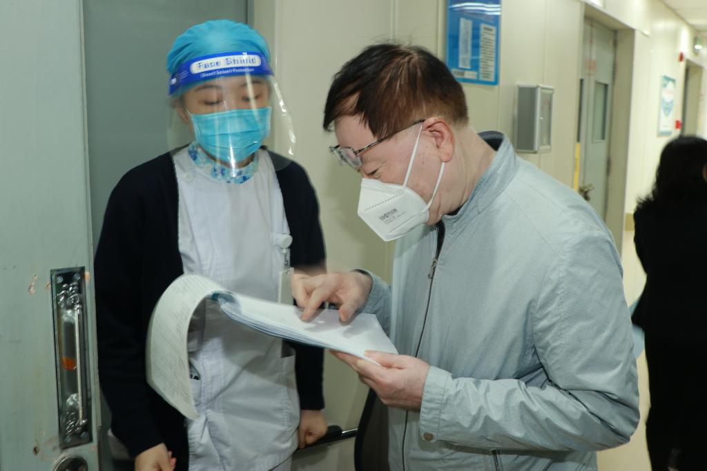 督导组一行先后前往预检分诊处、住院病房、发热门诊、隔离病区等疫情防控重点部位详细询问和了解医院疫情期间患者管理、院感防控、核酸检测以及疫情防控工作落实情况,并现场查阅相关佐证资料。