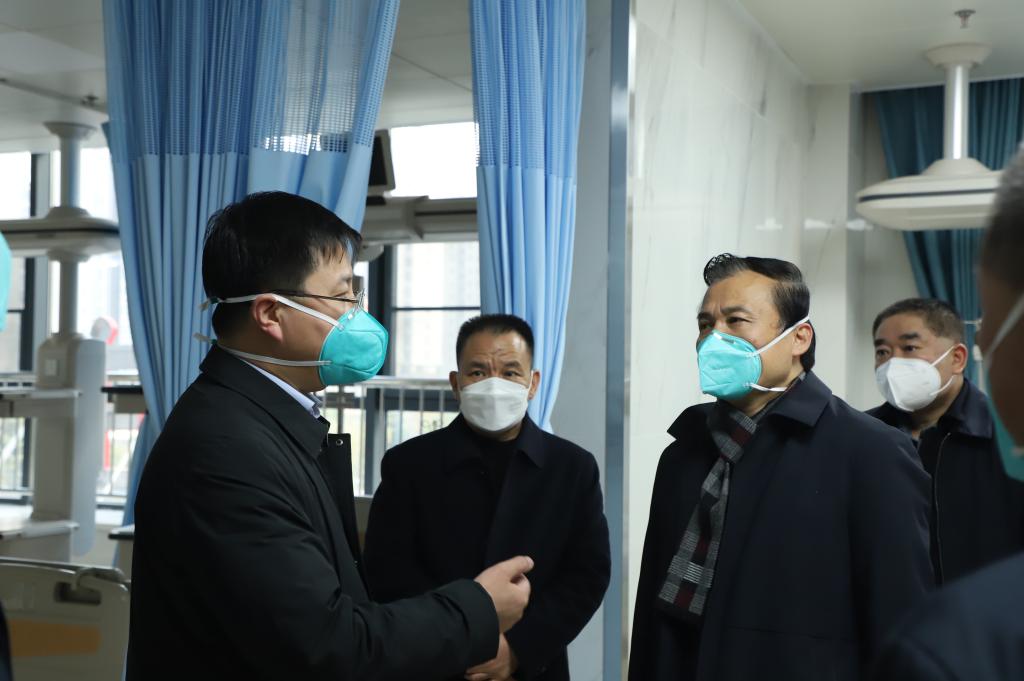 督导组先后来到预检分诊、急诊缓冲区、重症医学科、发热门诊实地了解情况。医院相关负责人就医疗资源储备与利用,发热门诊、定点医院与隔离病房收治情况,药品和检测试剂储备等工作进行汇报。
