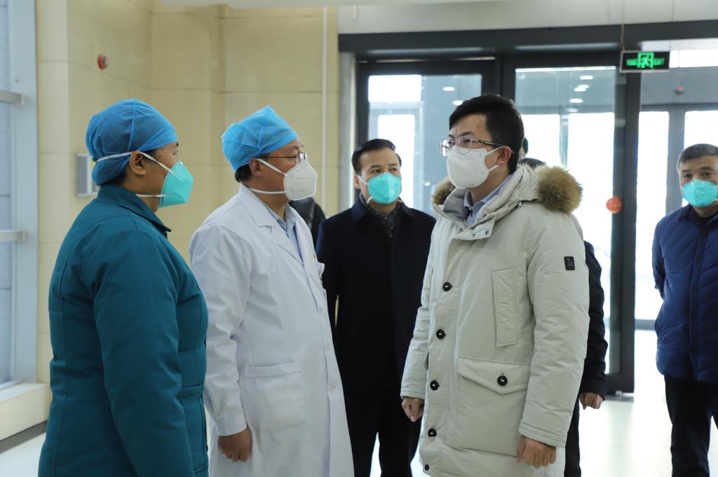 督导组先后深入急诊、药品库房、重症医学科、发热门诊等处实地查看,重点询问了医院职工新冠疫苗接种、医疗资源储备与利用、药品和检测试剂储备,以及发热患者接诊等情况。院长乔梵汇报了医院规划布局、设施条件、物资和设备配备和定点救治医院人员配备等相关情况。