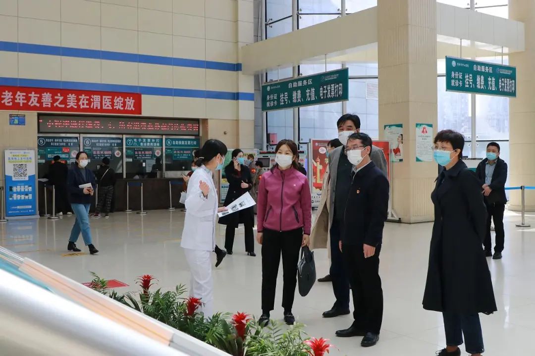 3月28日,健康陕西建设复核小组专家吕悦宁一行五人莅临乐鱼在线登录入口,对医院健康医院建设情况进行现场督导检查及核验。市卫健委副主任同学军、院党委委员李红兵以及相关职能科室负责人陪同检查。