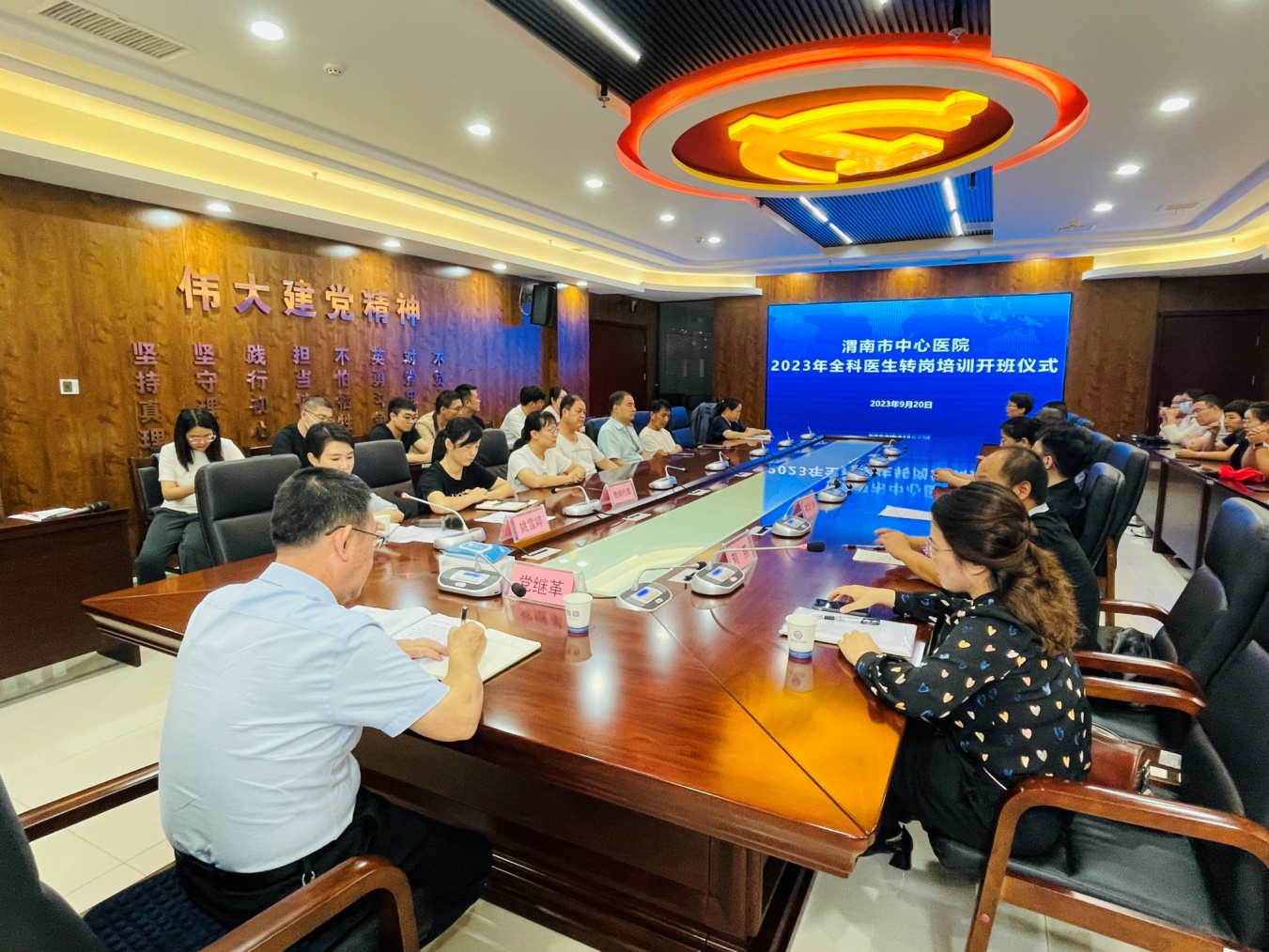 为贯彻落实国家、省、市关于全科医生转岗培训的相关要求,加快培养适应基层卫生工作特点、掌握全科医学知识与技能的全科医生队伍,9月20日,市中心医院召开2023级全科医生转岗培训开班仪式。院党委副书记党继革,科研教学科、全科医学科教师代表及来自全市各地的转岗医师参加仪式。会议由科研教学科负责人姚雪婷主持。
