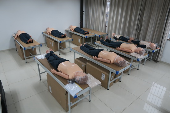 基地现拥有教学场地面积3900㎡,投入专项资金500余万元,购置国内外先进的临床模拟教学仪器和培训设备,是目前全省投资较大、设备较先进、基本临床培训科目较齐全的全科医师规范化培训基地。设有全科医师临床技能训练中心,拥有高级生命支持模拟人,临床诊断思维教学系统,临床心电图诊断及考核系统,基本穿刺模拟训练人,心肺听诊与腹部触诊仿真教学系统,新生儿和儿童模拟静脉穿刺、输液、气管插管等模拟人,无菌操作、体表肿物切除、关节穿刺、切开缝合、骨折固定训练等外科模拟设施,孕妇腹部触诊、刮宫、分娩示教等妇产科模拟设施,新生儿、儿童及成人心肺复苏模拟训练(CPR)、气管插管、电除颤等急救模拟设施,视网膜病变检查、耳内检查、鼻腔出血检查等模型,全科基本生理检查、眼耳检查壁挂诊断系统等。另外基地临床技能训练中心还配置了进口呼吸机、进口电子支气管镜等医疗器械。