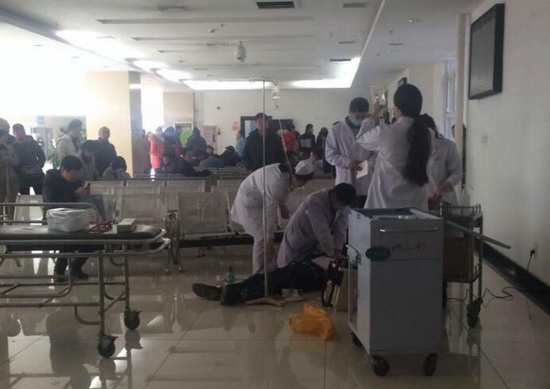 当门诊部护士长到达现场时,抢救区域已经被就诊患者和家属围观的水泄不通,医院保安人员立即对现场进行了秩序维护。随后,市中心医院立即启动了心肺复苏的应急预案,心内科李军农主任带领该科室医务人员立即赶往现场,并通知各相关科室人员前来增援,前后不到5分钟时间,门诊办、急诊科、心内科、保卫科等30多位医护人员为病人进行了紧急抢救。