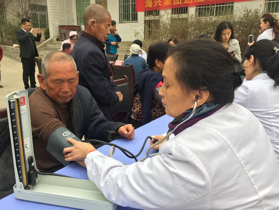 尽管还是乍暖还寒的季节,但丝毫没有影响医务人员和村民的热情,量血压、咨询病情,医生们都忙个不停。不一会,义诊桌前就围满了前来咨询的村民。医生们认真接待了每一位诊治的村民,同时对相关病症进行了讲解。