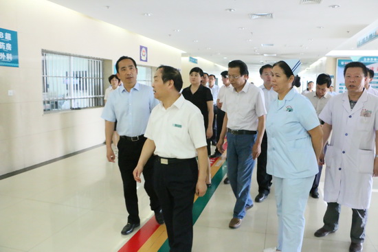 6月15日下午,渭南市人民政府市长李明远、秘书长薛楠、副秘书长王宝红,市发改委主任杨武民、市财政局局长张养民一行来我院调研。市卫计局局长金敏学、党委书记张拴劳,我院院长张进社、党委书记鲁海燕及院领导班子成员等陪同调研。