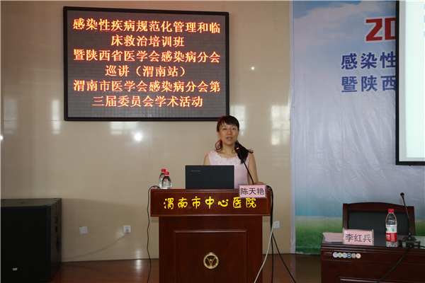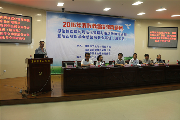 7月16日,市继续医学教育项目——感染性疾病规范化管理和临床救治培训班暨陕西省医学会感染病分会巡讲(渭南站)、渭南市医学会感染病分会第三届委员会学术活动在我院学术报告厅举行。西安交通大学第一附属医院感染科主任、陕西省感染病学会主任委员赵英仁教授,西安交大一附院感染科副教授、陕西省医学会感染病分会秘书陈天艳副教授,中国人民解放军第四军医大学唐都医院感染病科副主任、副教授张颖,渭南市医学会王建宁主任,我院党委书记鲁海燕,医务科周东升主任,感染内科副主任李红兵、独晓勤以及全市从事感染病专业的医务人员、我院规培学生近二百人参加本次学术活动。活动由我院感染内科王峰志副主任主持。