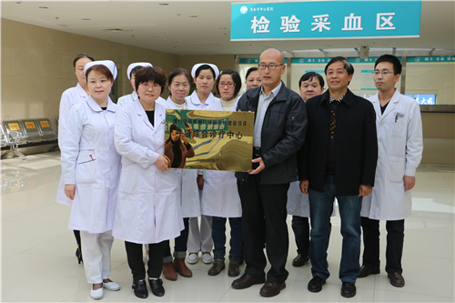 讲座开始前,我院医务科周东升主任对李教授和冯护士长的到来表示热烈欢迎,接受由李满祥教授代表中国医院协会授予的慢性呼吸疾病门诊规范化建设项目“呼吸综合诊疗中心”项目牌,并合影留念。