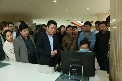会后,各医院信息建设工作骨干人员到门诊大厅,现场观摩了我院用卡环境改造成果,并用测试卡亲自示范健康卡的用卡流程。
