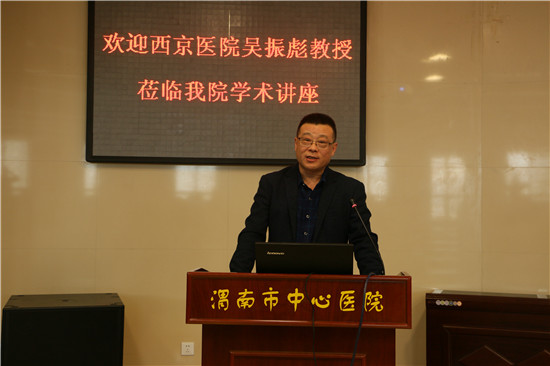为了提高我市临床医师对痛风的诊疗水平,3月22日下午3时,“2016年中国痛风诊疗指南解读”培训班在我院学术报告厅举办。西京医院临床免疫科主任、博士生导师吴振彪教授应邀为大家做精彩的学术讲座。我院医疗组长焦建雄参加会议。来自全市、县、区及我院200余名医护人员聆听讲座。会议由老年病血液内科周淑亚主任主持。