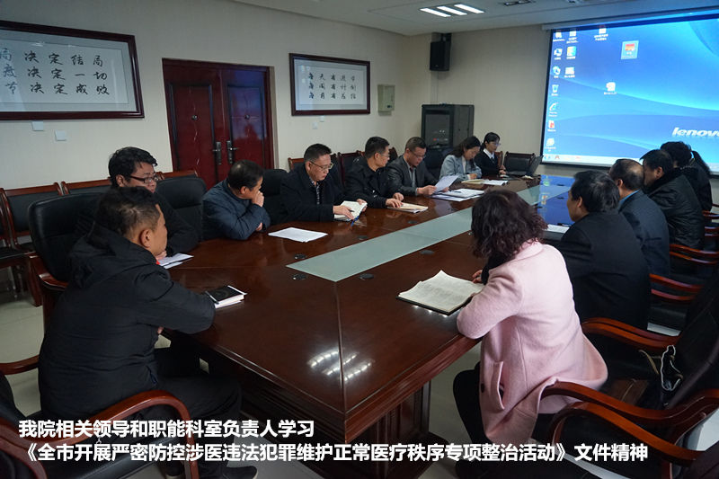 近日,医院组织召开了专项整治活动专题会议。会上,贾京波科长回顾了过去的经验和教训,分析了医院目前的医疗安全形势,提出要重点开展医护人员心理疏导教育,增强自我保护能力;完善预案,定期演练。一旦发生医患矛盾纠纷,医生、保安、民警一定要提前介入,形成合力,保护医护人员人身安全。保卫科副科长杨峰介绍了我院采取的安全防范措施,已给医护人员配备了相关设施,强调院领导非常重视,院内巡逻队及派出所联合共同维护医院医疗安全。医务科副科长刘韬强调,医院加强重点科室建设,做好急危重症患者抢救和诊疗工作,严格执行诊疗规范和操作指南,切实保障患者安全。宣传科党淑尽副主任指出,医院加大专项整治活动宣传力度,相关部门积极配合,广泛宣传健康防病知识,通过义诊和发放科普资料等,形成科学的就医理念。门办张占安副主任汇报了近期门诊指定专人负责门急诊的诊区管理,维护正常的医疗秩序。护理部、信息科、监察科、质控科负责人表示,这是每一个中心医院人义不容辞的责任。驻院警官也表态,只要威胁到医护人员的人身安全,不管有多大危险,都要重拳出击、严厉制止。
