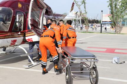 7月8日上午,秦晋豫黄河金三角地区第二届急诊高峰论坛暨反恐航空急救演练观摩会”举行,三架直升机参加反恐航空急救演练,全面开展黄河金三角地区直升机航空医疗救援服务,提高突发急症救治成功率及应对突发公共卫生事件的处置能力。