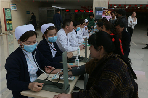 活动现场,来自肾病内科的副主任医师薛晓霞、侯金娥、雷宏强,住院医师王向阳为前来义诊的市民们进行义诊、提供健康咨询,护士长关玉莲和王晓萍、张佩、曾磊以及两名护士免费为市民们测血压、测血糖,并且针对肾病患者进行饮食、运动健康宣教。