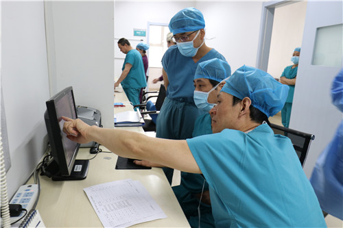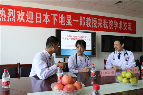 参观完门诊及病区,下地显一郎教授在示教室与心内科的医生们进行学术交流,了解心内科手术量及业务范围等。随后到病房了解当天拟行冠状动脉造影术+冠状动脉支架置入术的患者病情,为患者查体,并主动要求反复查看患者前期冠状动脉造影术的录像资料,以便制定一个更加合理的手术方案,大家对教授这种认真负责的态度和精益求精的精神赞叹不已。