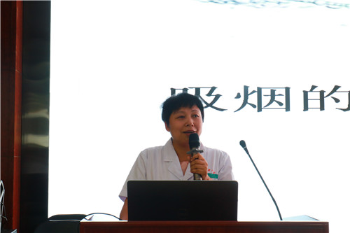 呼吸内科康军英副主任医师从烟草的成分、吸烟的危害讲起,不仅鼓励大家立刻戒烟,还提出了一系列戒烟的方法。她讲到:“吸烟危害心脏健康,大幅增加冠心病、心肌梗死和心脏性猝死的风险,为了自身和家人的健康,戒烟刻不容缓,戒烟或许不会一次成功,或许会使人精神不振、注意力不集中甚至情绪暴躁,但只要坚持,只要有决心,一定会成功戒烟。”