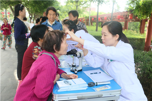 一大早,医务工作者们来到朝阳公园为市民们进行义诊,在中心医院眼科门诊也开放所有诊室免挂号费和诊疗费为前来就诊的患者免费检查。