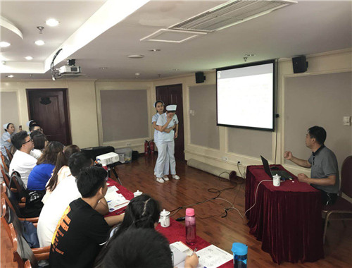 实践操作环节,急诊急救技能大赛的获奖者丁娜、吴新苗现场演示了单人徒手心肺复苏术,随后,穆晓红护士长边讲解边示范,使大家更加清晰地掌握操作要领,学员们纷纷积极实践,培训现场气氛热烈。