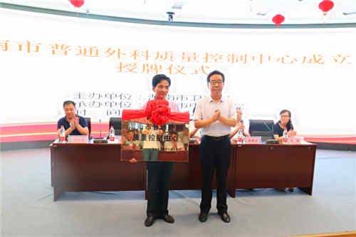 市卫计局医政科科长李娟宣读了质控中心批文,市卫计局副局长李晓平为市普通外科质控中心授牌。