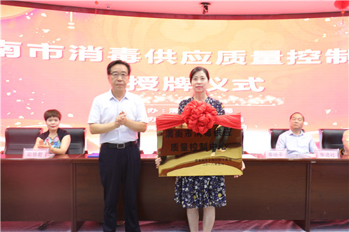 会上,市卫计局医政科李娟科长宣读了消毒供应质控中心批文,市卫计局李晓平副局长为市消毒供应质控中心授牌。
