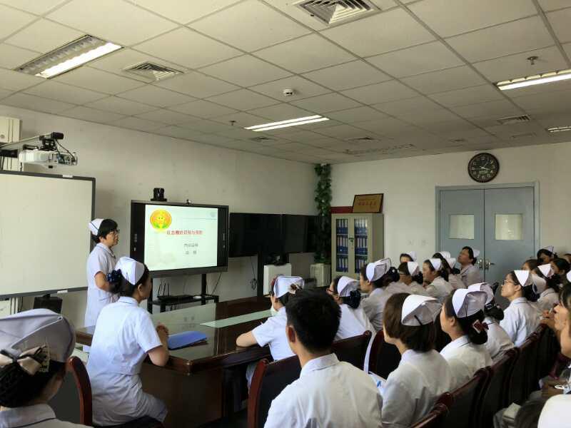 为了不断提升护理队伍的业务知识和人文素养,贯彻落实我院今年“专业提升年”、“文化建设年”的精神和要求,2018年8月30日下午4时,内科系统各护理单元在科护士长解明侠的精心组织安排下,在心血管内科示教室举办内科系统护理人员专业知识、人文素养方面的培训,内科系统各护理单元护士长及优秀骨干护士共60人参加。