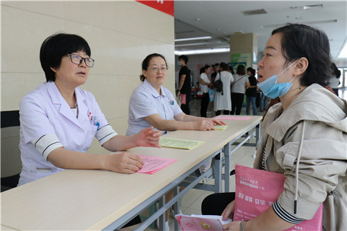 活动通过义诊和发放宣传资料的方式向大家普及备孕期、孕前优生健康检查、产前筛查、新生儿疾病筛查等优生优育健康知识,呼吁全社会继续关注和重视出生缺陷预防。产科主任魏满莉、护士长徐艳丽、王晓丽为前来咨询的孕产妇细致解答。