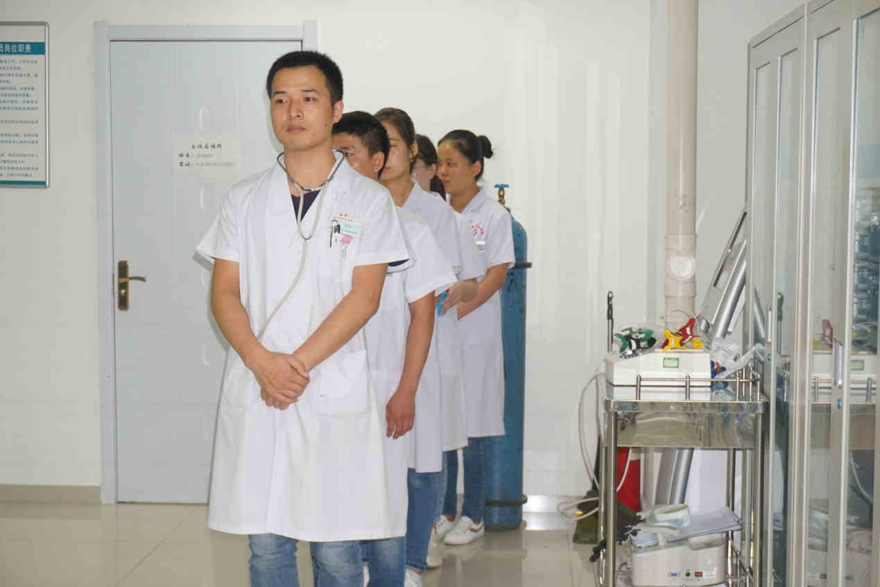 看似复杂紧急的抢救流程,在小组组长的指挥下,急救小组每位成员都能紧张有序、各司其职、娴熟操作和默契配合下顺利完成。
