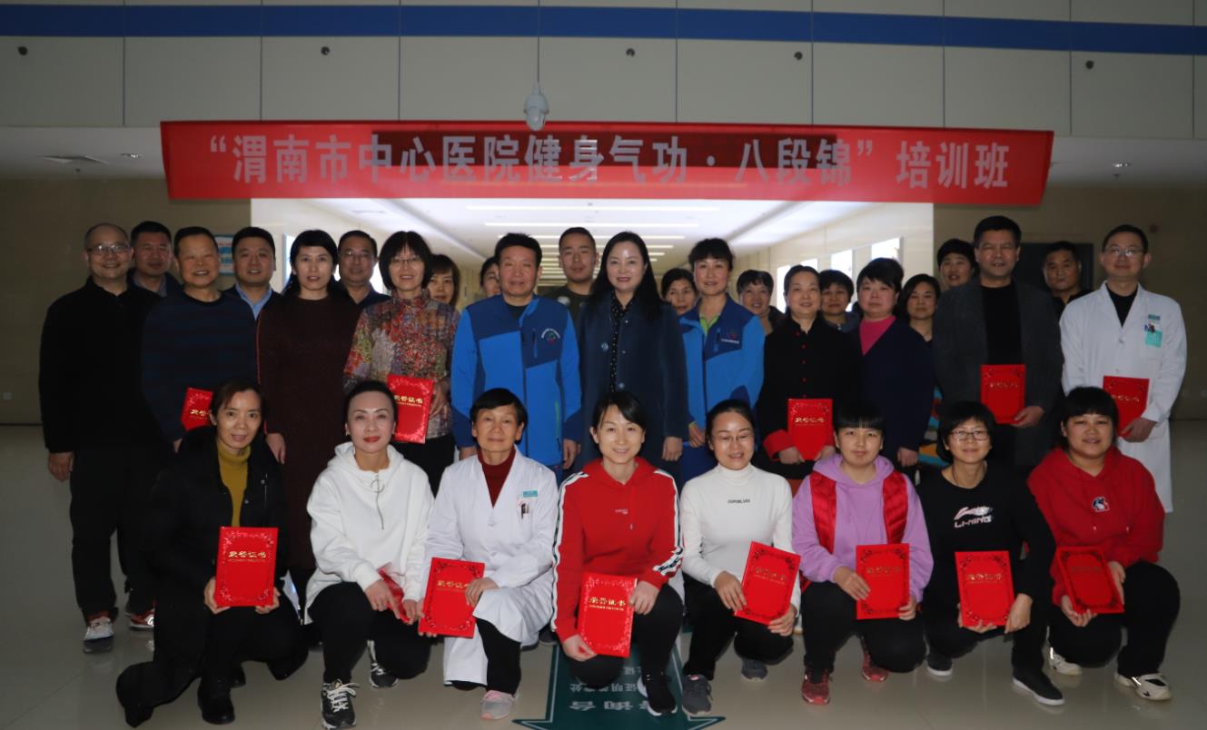 两手托天、左右开弓、摇头摆尾……伴随着优美舒缓的音乐,12月24日下午16时,在乐鱼在线登录入口门诊二楼举行了“乐鱼在线登录入口健身气功·八段锦”培训班的结业考核。