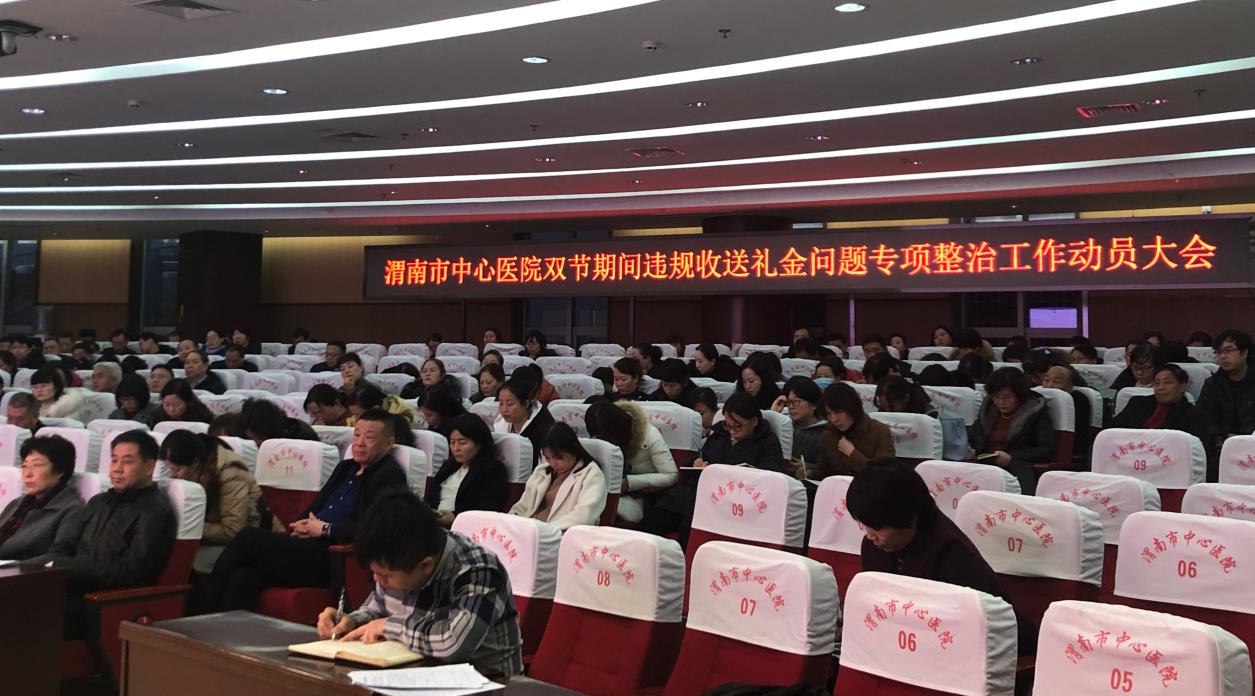 纪检委副书记谭村岗针对整治违规收送礼金专项活动进行动员,同时传达了《中共渭南市纪委监委派驻市卫健委纪检监察组关于强化元旦春节期间严肃整治“四风”问题的通知》《中央纪委监委对169起违规收送礼品礼金问题的分析》《中共渭南市纪委监委派驻市卫健委纪检监察组关于在元旦春节期间开展深化违规收送礼金问题专项整治工作实施方案的通知》,并指出院内通过预先组织、提醒督促院内人员廉洁、自律。