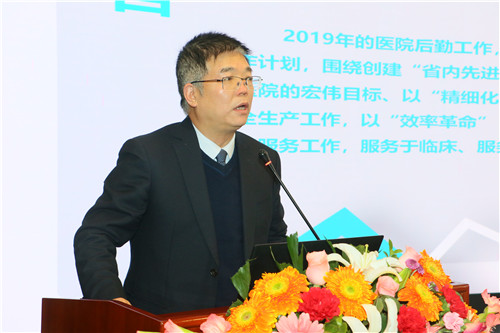 张亚峰副院长做2019年度总务后勤工作总结。扫黑除恶工作全院上下齐心协力,后勤服务也贯穿各个环节,优化保障能力和管理水平,总务后勤工作一直紧抓不松。