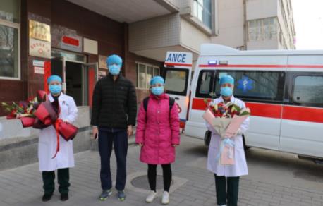 2月22日下午,渭南市又有2例新冠肺炎确诊患者治愈出院,两名患者向医护人员送上鲜花以表内心感激之情。