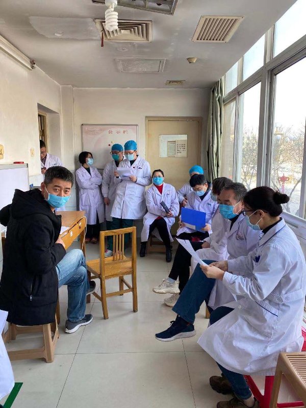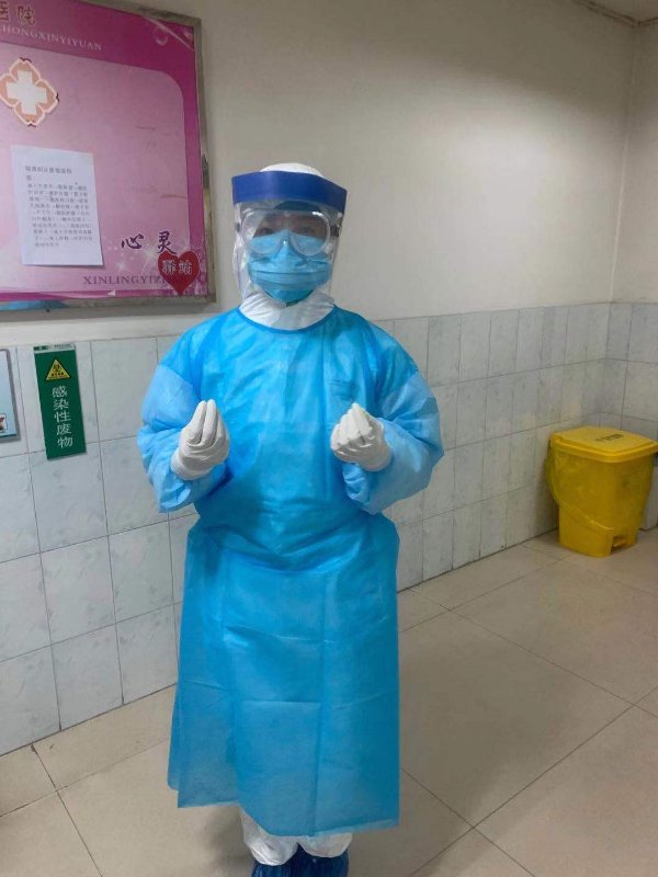 武静大夫也是毫不畏惧,1月28日和苏和平主任、李红阁副主任一起为第一例确诊患者会诊,他做好防护走进病房,当日会诊后,大家都说:"武静你厉害,他是确诊患者啊!"她说:"确诊病人咋了,不是有防护服吗?"大家看见她不畏惧的神态,为她竖起了大拇指:"厉害了,中医人!"