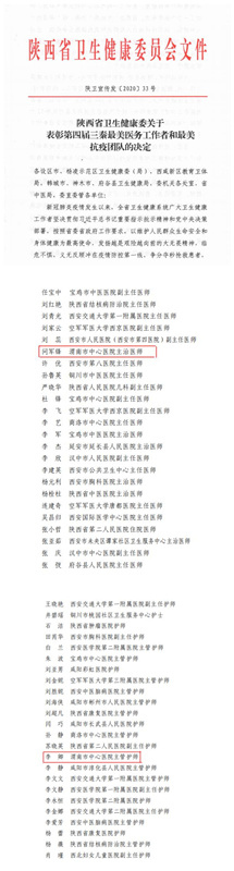 日前,省卫生健康委下发了《陕西省卫生健康委关于表彰第四届三秦最美医务工作者和最美抗疫团队的决定》,乐鱼在线登录入口重症医学科主治医师问军锋、门诊部护士长李卿被授予“第四届三秦最美医务工作者”称号。