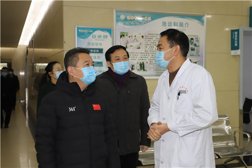 “新年好,大家辛苦了!”在预检分诊处、门诊大厅、急诊科、发热门诊,每到一处,院领导向坚守工作岗位的医护人员送上新年祝福。并就发热门诊区域设置、医疗、护理、后勤保障、安全生产等方面情况现场查看,希望大家一如既往,恪尽职守,以高度的责任心全力以赴做好各项工作。鼓励大家在2021年迈出新步伐,干出新成绩。