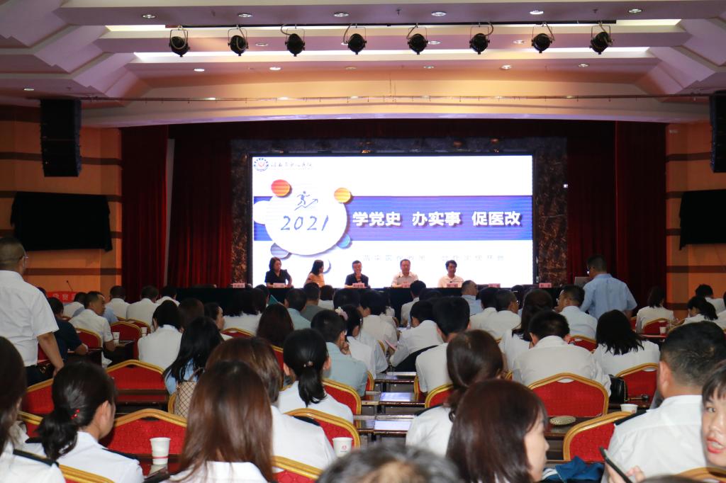 宣讲环节中,两位宣讲员分别以《精准把握公立医院高质量发展核心竞争力》《学党史办实事促医改政策解读》向参会人员宣讲医院学科建设和人才培养的重要性,使大家更准确理解高质量发展的概念和内涵。通过对医保政策的解读,使大家了解这一政策对医院以及患者带来实实在在的好处,以及对医院今后发展带来的好处。