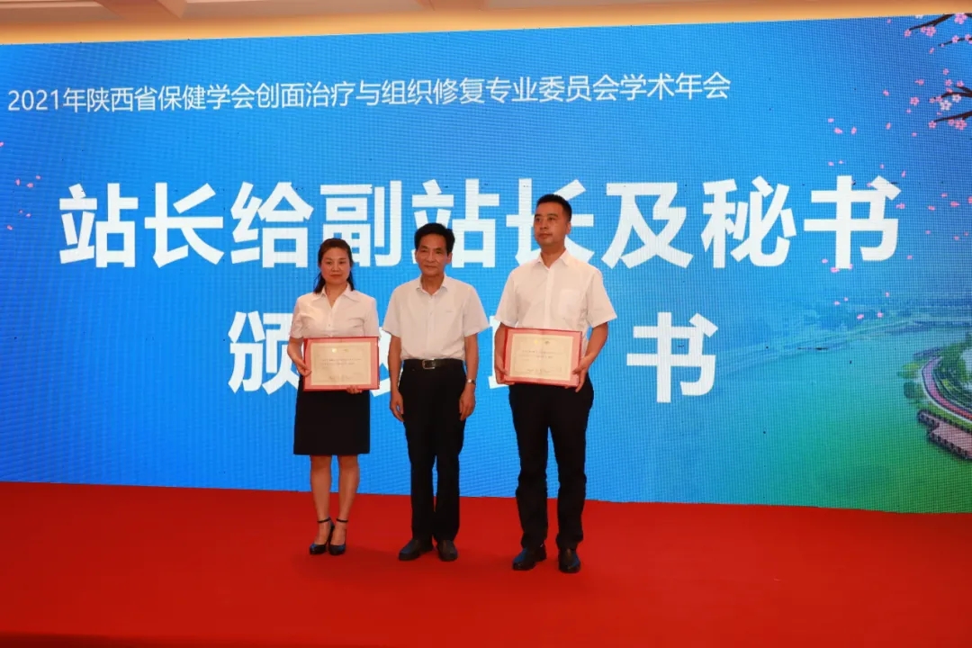 省创面修复专业委员会主委宋涛为渭南工作站授牌。