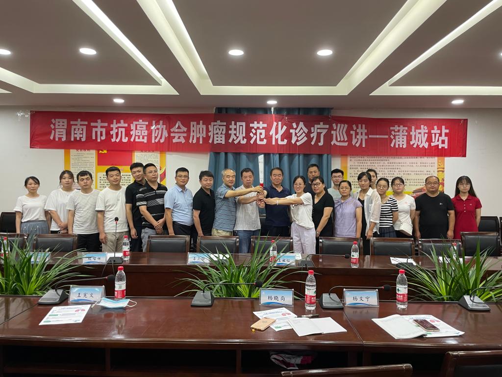 7月27日下午,渭南市抗癌协会理事长、市中心医院肿瘤外科二病区主任医师杨斌带着”百年百县肿瘤科普火炬“走进蒲城县医院,在该院肿瘤外科校智祥主任带领下,举行火炬传递仪式,将火炬传递给蒲城县医院每一位肿瘤工作者。