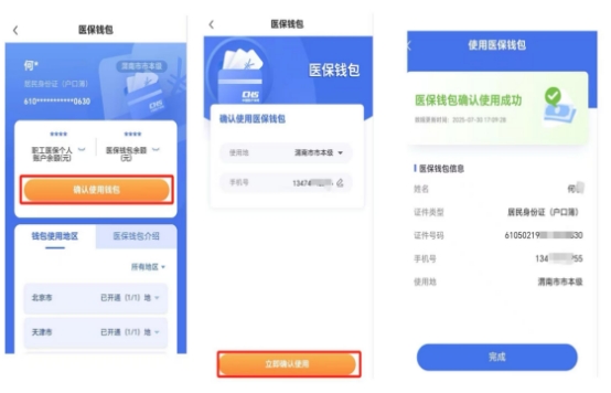 3.点击确认使用钱包—立即确认使用—完成医保钱包功能开通。