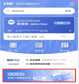2.注册登录后,在乐鱼(中国)-乐鱼点击进入“医保钱包”服务界面。(划重点:需本人手机号实名认证,否则不予通过。)
